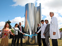 El intendente Julio Pereyra participó esta mañana en el Hospital de Alta Complejidad en Red El Cruce “Néstor Kirchner”, junto al Secretario de Derechos Humanos de la Provincia de Buenos Aires, Guido Carlotto, de la inauguración de la escultura que recuerda y homenajea a los trabajadores de la salud pública desaparecidos en la última dictadura militar. La obra de la artista marplatense Nélida Valdés denominada “Por la memoria”, fue emplazada en los jardines del Hospital en el marco de las conmemoraciones organizadas desde el Municipio por el Día Nacional de la Memoria por la Verdad y la Justicia que se celebrará el próximo 24 de marzo. “Es una alegría muy grande poder compartir este evento que nos hace reflexionar con una mirada hacia atrás y pensar en lo que ha pasado en la historia argentina”, afirmó Julio Pereyra al comenzar su discurso ante un nutrido grupo de personas que colmaron el lugar. El mandatario comunal recordó a las miles de víctimas militantes del sistema de salud del país que han desaparecido y reflexionó: “Es un muy merecido homenaje a todos estos desaparecidos, y todos los que tenemos la obligación de ejercer un cargo público tenemos que recordarlo de forma permanente”. Por su parte, el Secretario de Derechos Humanos, Guido Carlotto, destacó que “es un doble elogio que se haga este monumento donde se está representando ni mas ni menos que la justicia social con este Hospital tan importante”. Luego, ponderó la idea de homenajear a los compañeros con la escultura: “hay que recordarlos con alegría porque éramos alegres, teníamos sueños e ideas y nos jugábamos la vida por lo que pensábamos”. A su turno, el director del nosocomio, Arnaldo Medina, explicó que el criterio para elegir la obra ganadora del concurso que fue seleccionada por un importante jurado, fue el “de tener un lugar con una escultura para que los médicos, los pacientes y todos los trabajadores del Hospital nos detengamos a reflexionar pensando en todos aquellos que lucharon por un país más justo y por la inclusión social de todos”. “El monumento es una mirada y un compromiso necesario para que la salud sea también un elemento transformador de la sociedad que incluya mas a los ciudadanos y nos permita lograr una patria más libre y soberana. Por eso para nosotros la memoria es también construir futuro”, resumió Medina. Finalmente, la artista Nélida Valdés se mostró muy emocionada de que su obra quede instalada en la entrada del hospital Néstor Kirchner y expresó: “es un gran honor poder homenajear a estas personas tan valiosas que con tanto entusiasmo empezaron a cambiar nuestra historia. Ellos tuvieron la alegría de empezar el cambio y nosotros tenemos la suerte de vivirlo y la obligación de cuidarlo para poder seguir viviendo en democracia y poder expresarnos libremente”. En cuanto a la escultura, la artista explicó que las dos formas de acero representan a la represión, las luces azules internas son el espíritu de los trabajadores de la salud desaparecidos, y los ojos que giran en derredor miran con terror ese momento, se ocultan a la realidad y quieren descubrir qué paso y saber la verdad. “Pero también están los ojos de las madres que nos enseñan a ver con amor, verdad, memoria y justicia. Ojos que buscan su identidad, ojos que brotan de la tierra y ven que sus sueños se hacen realidad”, destacó. En el lugar también estuvieron presentes, la presidenta del Honorable Concejo Deliberante de Florencio Varela, Laura Ravagni; la Sra. Miembro de las Madres de Plaza de Mayo línea fundadora, María Adela Antokoletz; el Director de Derechos Humanos de la Municipalidad, Gabriel Ñañez, funcionarios municipales, provinciales, concejales, la comunidad del Hospital El Cruce y vecinos.