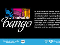 La Municipalidad de Florencio Varela invita a los vecinos a participar del I Festival de Tango que se realizará el próximo sábado y domingo, a partir de las 16 hs. en la Universidad Nacional Arturo Jauretche, Calchaquí N° 6200.