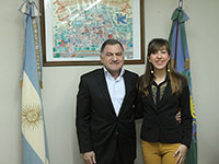 El intendente Julio Pereyra recibió hoy a María Belen Iorizzo, vecina de Florencio Varela, que se adjudicó el primer puesto en la octava competencia interuniversitaria de Derechos Humanos de la que participaron estudiantes de todo el país. El Jefe Comunal felicitó a la joven varelense y le manifestó su orgullo por la prestigiosa conquista que le permite a la estudiante viajar a diferentes países de Europa, para continuar con la investigación. Durante la audiencia celebrada en la Intendencia, Pereyra puso en relieve la importancia de la familia a la hora de alcanzar grandes objetivos. “Siempre tengo el apoyo de mi familia; mi mamá (María Elena Mensi) me bancó siempre”, dijo la estudiante de derecho de la Universidad Nacional de La Plata, de 20 años de edad, que en el encuentro también recordó a su padre, Marcelino Ernesto Iorizzo, lamentablemente fallecido el año pasado.