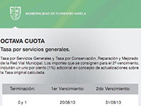 La Municipalidad de Florencio Varela informa que a partir del próximo martes 20 de Agosto vencerán los plazos para abonar la octava cuota de la tasa de Servicios Generales y Tasas por Conservación, Reparación y Mejoramiento, de acuerdo a la terminación de los números de partida.