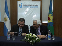 Este mediodía, el Intendente Julio Pereyra junto al rector de la Universidad Nacional Arturo Jauretche, Ernesto Villanueva, firmaron un convenio de cooperación mutua técnica y científica entre el municipio y la casa de altos estudios. Se trata de lograr un trabajo conjunto que habilite procedimientos eficientes con profesionales y estudiantes en casos emergencias sanitarias y desastres.
