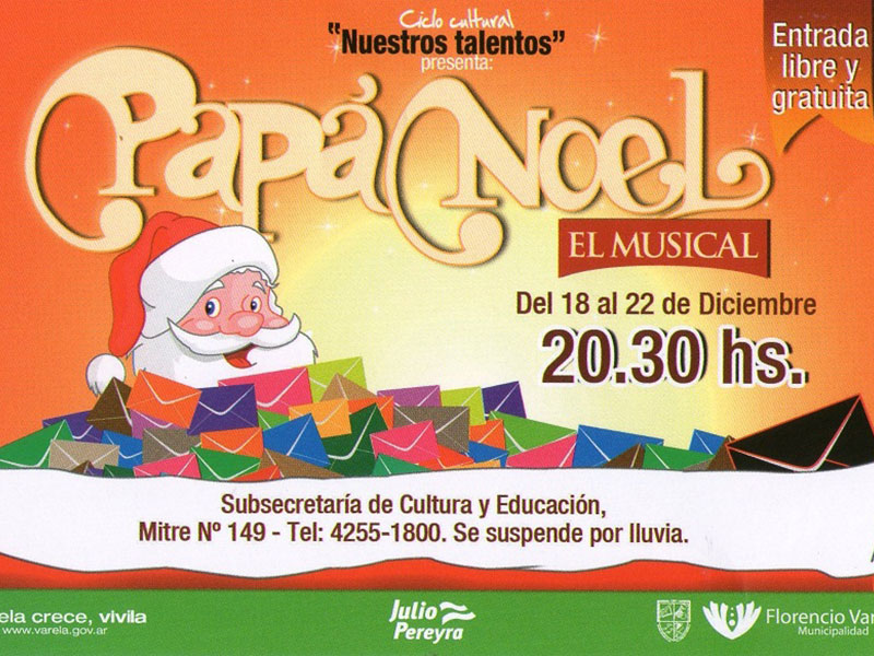 La Municipalidad de Florida Varela recuerda la invitación a todos los vecinos del distrito a disfrutar hasta el domingo 22 de Diciembre, del musical presentado por el elenco de Nuestros Talentos que tiene a Papá Noel como protagonista.