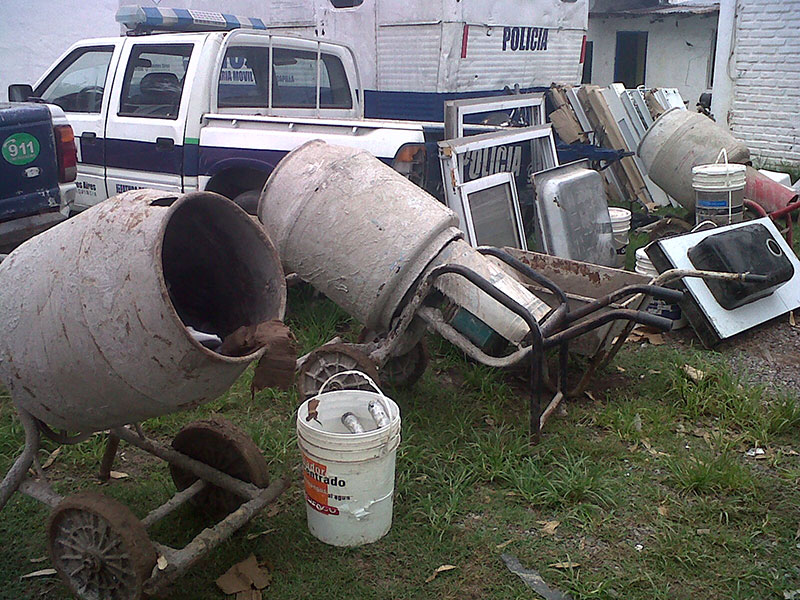 Vale destacar que el Poder Judicial a través de las fiscalías descentralizadas tomó intervención en los dos delitos cometidos: la usurpación y el robo. Detalle de los elementos robados Entre los materiales, maquinarias y elementos de baño se encontraron: escaleras metálicas, máquina hormigonera, tijera para cortar fierros, carretillas, pico, palas, ventana, bachas, azulejos, serrucho, mesadas de acero, bacha, vanitory, jaboneras, etc.