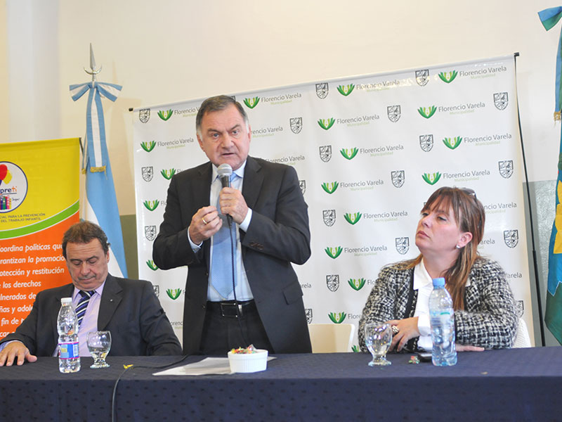 En este contexto, el intendente Julio Pereyra felicitó a los presentes por esta iniciativa y alentó a combatir el trabajo infantil y hacer valer los derechos del niño en todos sus aspectos. “Vamos a tener que trabajar en forma permanente este tema. Esto tiene que ver también con la necesidad y el aprovechamiento de los intermediarios, de no pagar los precios justos a la producción. Vemos un montón de mamás bolivianas en algún rincón de Varela con sus chicos vendiendo los productos en forma directa en los barrios desde la mañana a la noche”, señaló el mandatario comunal. Por otro lado, se refirió a otras problemáticas de la niñez sobre las que es necesario trabajar, como la crianza y crecimiento de hijos de personas privadas de su libertad, o niños discapacitados. “Cuando hablamos de la vulnerabilidad, debemos ampliar el marco y contemplar todas estas situaciones. Si queremos hacer un país más justo, debemos empezar por ellos”, agregó. “Construyendo territorios sin trabajo infantil” es llevada a cabo a través de convenios firmados entre el Ministerio de Trabajo de la Provincia de Buenos Aires, Unicef y el municipio de Varela. Estuvieron presentes en la oportunidad, la Coordinadora de la Comisión Provincial para la Prevención y Erradicación del trabajo infantil, Licenciada María Nogueira; el Subsecretario de Trabajo de la Provincia, Carlos Molina; funcionarios provinciales y municipales, vecinos y miembros de COPRETI.