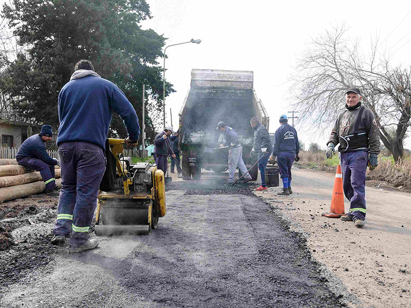 En este marco, se llevaron adelante labores de bacheo sobre la calle Cacheuta del barrio Sarmiento; y Tinogasta y Brown del Centro del distrito.