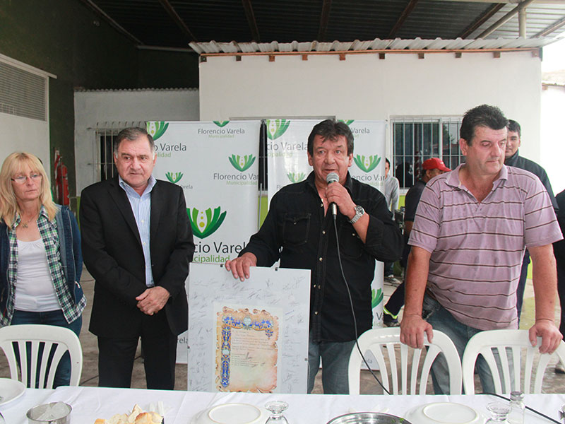 El mediodía de ayer, el Intendente Julio Pereyra compartió un almuerzo con trabajadores del corralón municipal quienes le entregaron un pergamino de agradecimiento por el apoyo y acompañamiento a los empleados.
