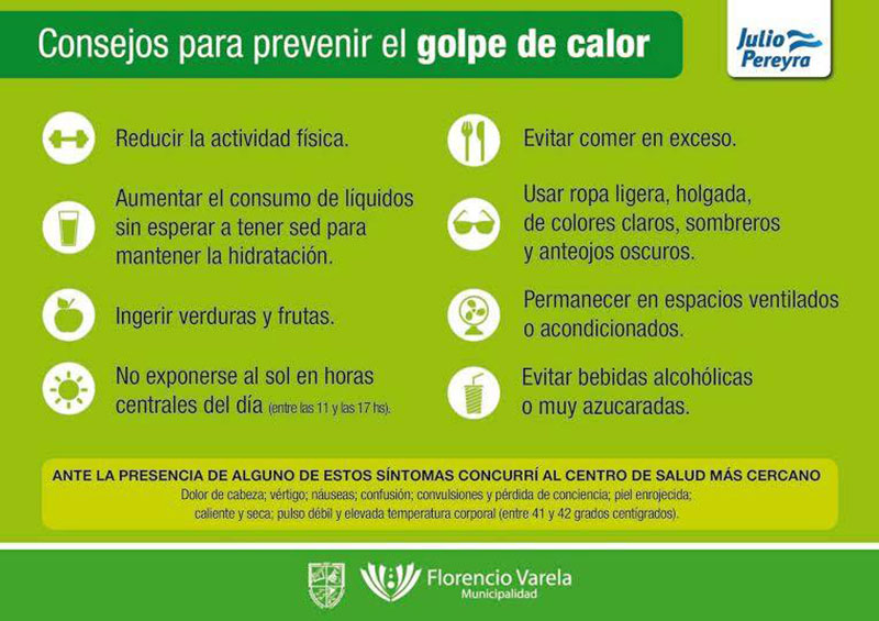 La Municipalidad de Florencio Varela recuerda las medidas preventivas para evitar problemas en la salud, especialmente en bebés, niños pequeños, mayores de 65 años y personas que padecen enfermedades crónicas por los golpes de calor que se pueden dar debido a las altas temperaturas del verano.