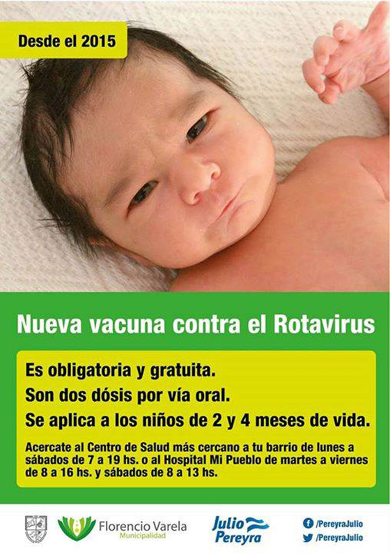 La Municipalidad de Florencio Varela recuerda que se sigue aplicando en los Centros de Atención Primaria de la Salud del distrito la vacuna contra el Rotavirus, que desde este mes ingresó al Calendario Nacional de Vacunación, por lo que es obligatoria y gratuita.