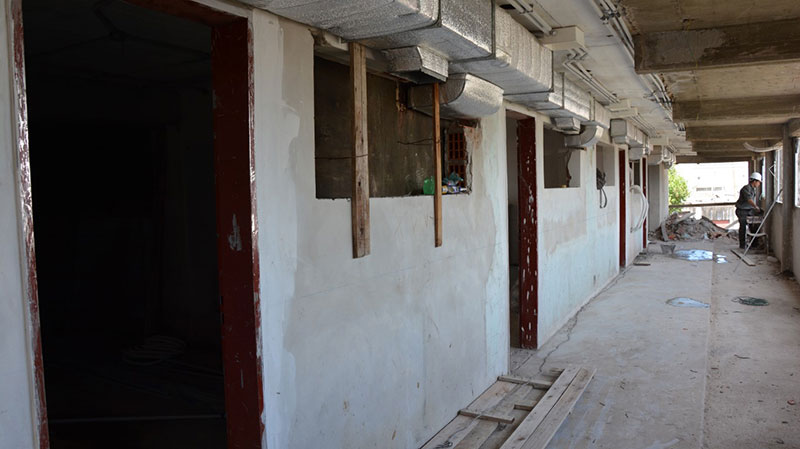 Actualmente, la obra avanza con trabajos de instalación eléctrica, conductos de calefacción y refrigeración central, revoques y construcción de consultorios.