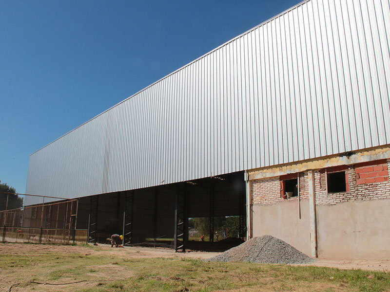 Asimismo, se lleva a cabo la construcción de garita, control de acceso; colocación de estructura para colocar el revestimiento de chapa en la obra del playón de usos múltiples cubierto de 50.00 metros por 27.00 metros de ancho.