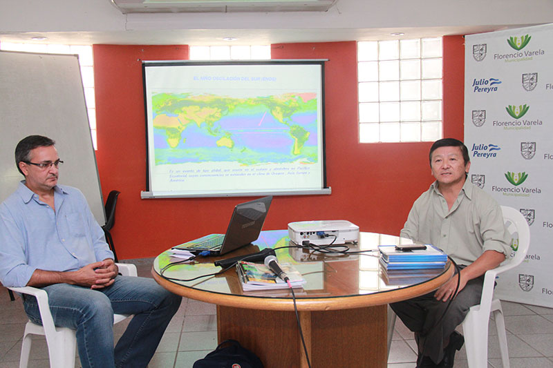 El encuentro con los periodistas y trabajadores de prensa se hizo en la sede del Museo municipal y fue encabezado por el secretario de Ambiente y Desarrollo Sustentable, Mario Kanashiro, y por el responsable del Sistema de Prevención Meteorológica Municipal MeteoVarela, Adrián Iruzun.