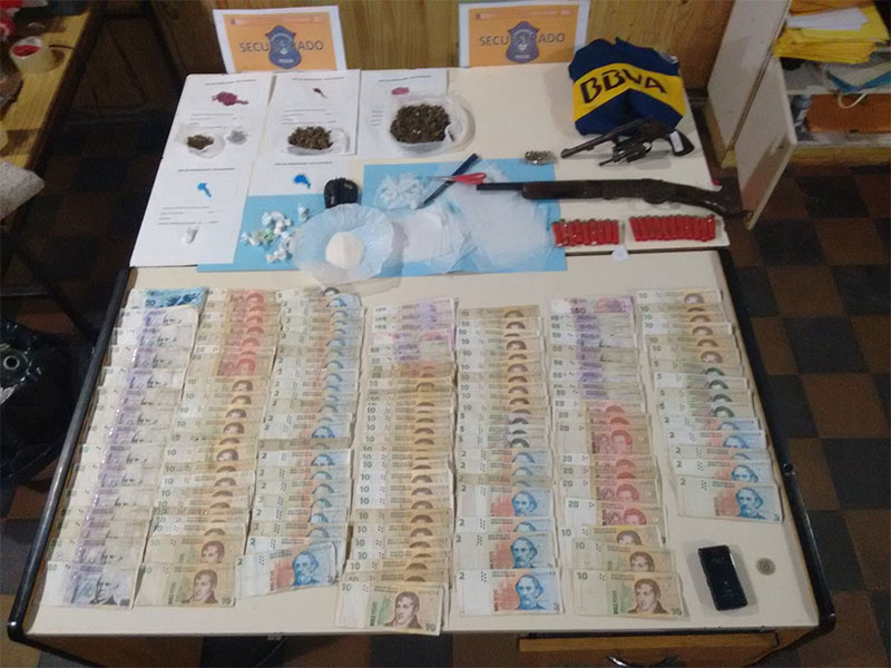 En uno de los allanamientos, que se llevó a cabo en los alrededores de las calles Tirana y Paysandú, se detuvo a un total de cuatro personas. En el operativo también se pudo secuestrar 483 gramos cocaína, más de 3kg de marihuana. Asimismo se incautó $ 1274 de dinero en efectivo, un fusil MAUSER calibre 7.62, dos celulares y elementos de corte.