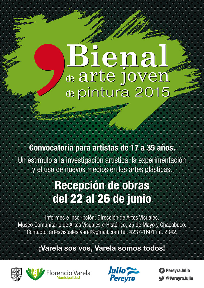 La Municipalidad de Florencio Varela informa que el próximo lunes 1° de Junio, a las 10 horas en el Polideportivo municipal La Patriada, se realizará el lanzamiento de la Bienal de Arte Joven; un concurso de pintura cuya participación es libre y gratuita.