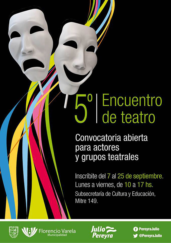 La Municipalidad de Florencio Varela informa que, hasta el viernes 25 de Septiembre, se encuentra abierta la inscripción para aquellos elencos que estén interesados en formar parte del 5º Encuentro de Teatro del distrito que se realizará en el mes de Octubre.