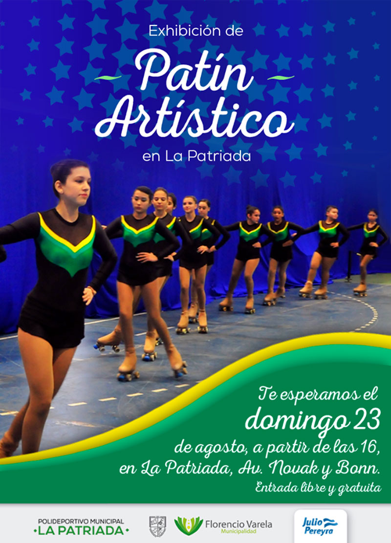 La Municipalidad de Florencio Varela informa que el próximo domingo 23 de Agosto, tendrá lugar una exhibición de Patín Artístico con entrada libre y gratuita en el Polideportivo Municipal La Patriada.